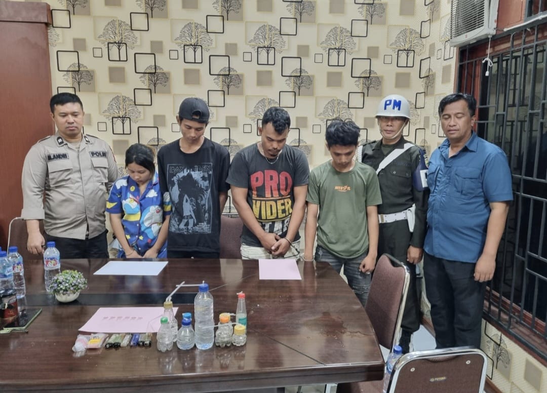 Ketiga tersangka laki-laki ditemukan bersama barang bukti berupa 6 klip sabu paket kecil, 5 bong sabu, dan 2 unit sepeda motor.