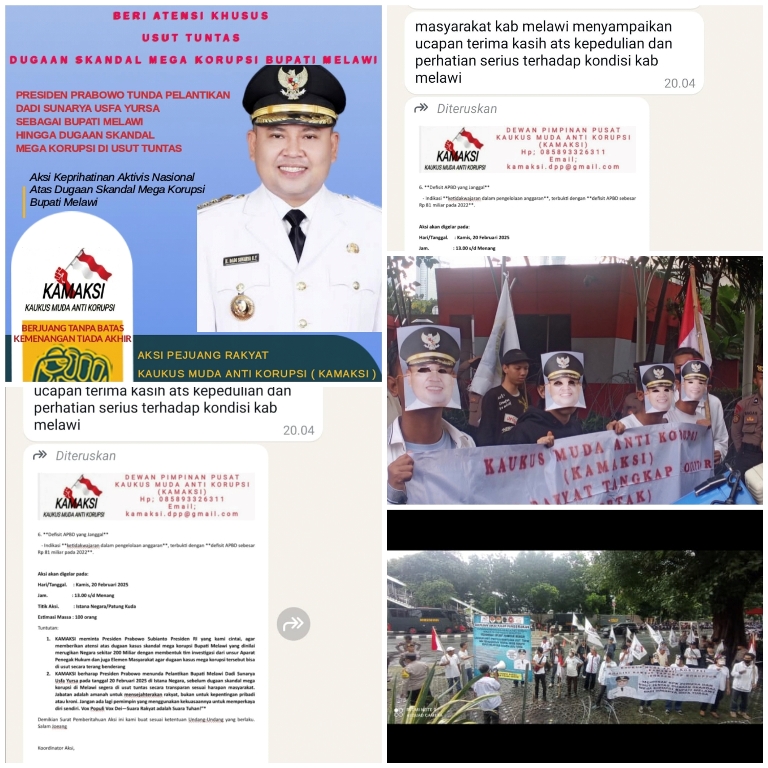 "Dukungan dari masyarakat Melawi semakin membakar semangat juang kami untuk terus bergerak menyoroti dugaan skandal mega korupsi Bupati Melawi. Aksi lanjutan Aktivis KAMAKSI akan kami laksanakan pada hari Kamis 20 Februari 2025 di Istana Negara/Patung Kuda untuk meminta Presiden Prabowo Subianto Presiden Republik Indonesia yang kami cintai dan kami banggakan agar Presiden segera memberi atensi dengan membentuk tim investigasi khusus untuk mengusut tuntas dugaan skandal mega korupsi Bupati Melawi secara transparan kepada publik," ujar Ketua Umum DPP KAMAKSI Joko Priyoski di Jakarta.