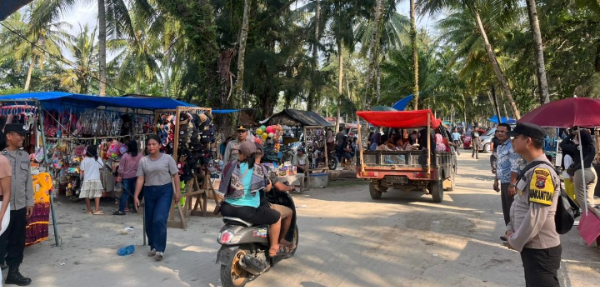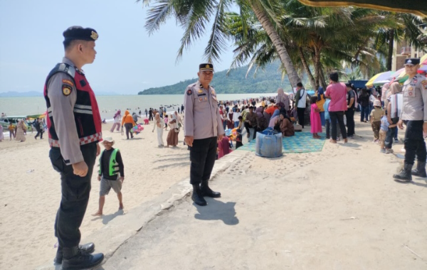 "Kami terus melakukan patroli dialogis dan memberikan imbauan Kamtibmas kepada pengunjung agar tetap waspada, terutama saat beraktivitas di pinggir pantai," ujarnya.