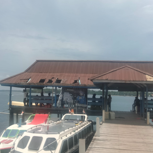 Tambatan Speed Boad yang di buat oleh Pemerintah Daerah Halmahera Utara dengan kontruksi bangunan semi Permanen, ini sudah mulai rusak bagian atasnya, karena bagian atas hanya papan.