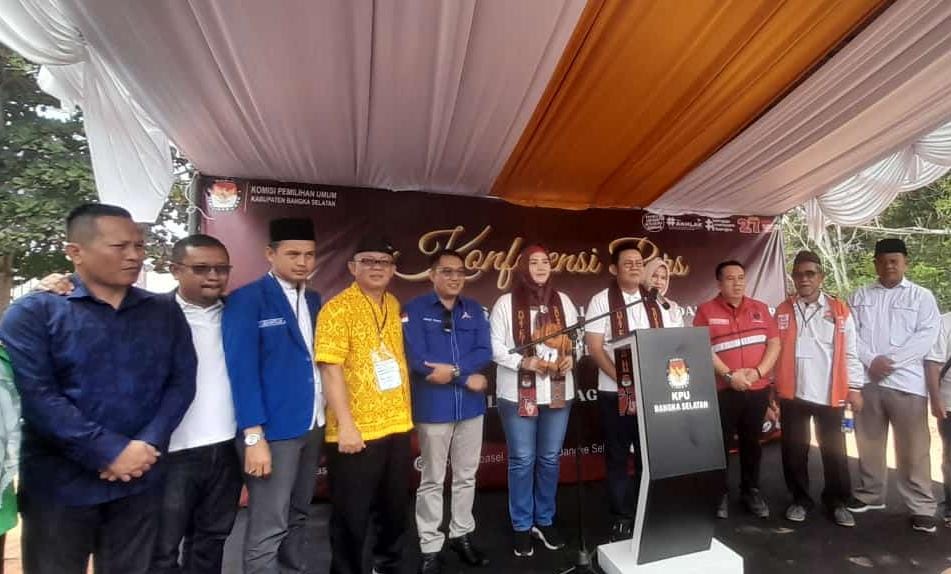 Adhyaksanews. BANGKA SELATAN --- 11 Partai Koalisi yang tergabung dalam nama" Rakyat Basel Bersatu " Bersama Ribuan masyarakat, tokoh pemuda, tokoh agama, tokoh ulama, para kader, simpatisan dan relawan, resmi menghantar Pasangan Tunggal Bakal Calon Bupati dan Bakal Calon Wakil Bupati dari PDIP yakni H Riza Herdavid, ST, MTr. IP Dan H Dewi Vitta Dewi, SE, MM. rabu (28/8/2024) siang.
