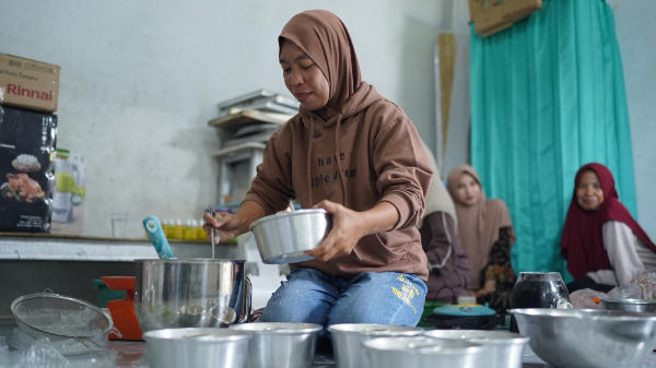 “Untuk kebutuhan membuat kue basah kami sudah membeli tambahan mixer dan oven listrik. Untuk memasak lauk pauk kami sudah membeli wajan, dandang besar, kulkas, freezer,” ceritanya.