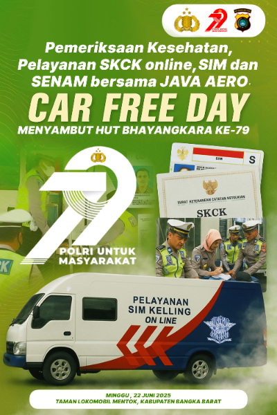 “Kami mengajak seluruh warga Bangka Barat untuk memanfaatkan kesempatan emas ini. Car Free Day besok bukan sekadar ajang olahraga, tapi juga layanan kepolisian yang dekat dan mudah diakses. Mari kita jaga kesehatan dan tertib administrasi sambil mempererat kebersamaan.”