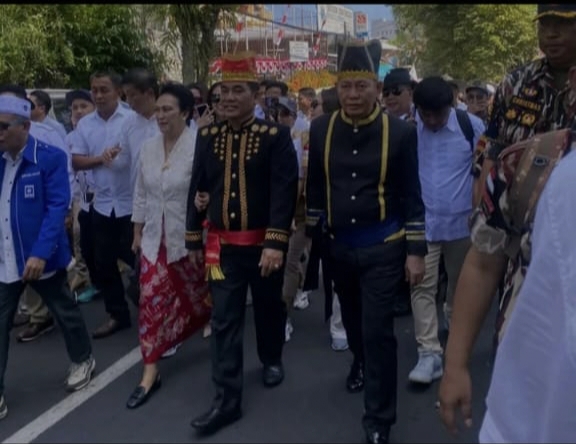 Dengan mengenakan pakaian adat Minahasa dengan diiringi oleh tarian Kabasaran, mereka berdua datang sebagai kandidat pertama yang mendaftarkan diri.