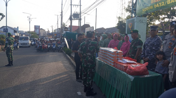 Dandim 0432/ Basel Letkol Arh Sebmy Setiawan menyampaikan, Pembagian takjil ini serempak dilakukan oleh Kodam, Korem, Kodim dan Koramil di seluruh Indonesia dan ini minggu terakhir Kodim 0432 / Basel melakukan pembagian takjil.