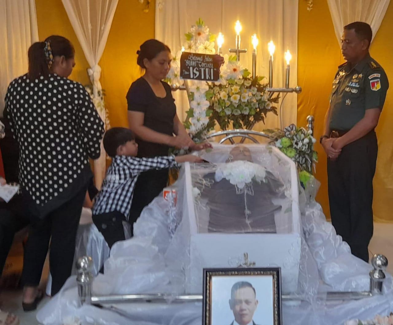 Adhyaksanews. BITUNG - SULUT, - ||Dandim 1310 Bitung Letkol Czi Hanif Tupen ST MIP, berkunjung ke Rumah Kedukaan Elvis Ontah dan sekaligus untuk mengikuti Ibadah pemakamannya serta serahkan sumbangan duka.