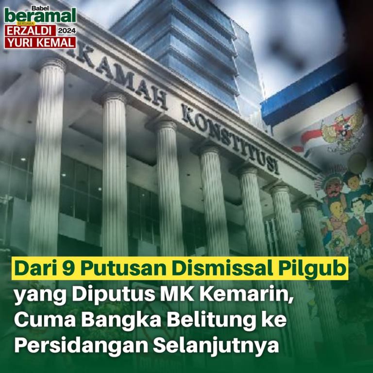 Adhyaksanews. Jakarta -- Mahkamah Konstitusi resmi menerima permohonan Perselisihan Hasil Pemilihan Umum (PHPU) Pemilihan Gubernur (Pilgub) Provinsi Kepulauan Bangka Belitung 2024 yang diajukan oleh pasangan calon nomor urut 1, Erzaldi Rosman - Yuri Kemal Fadlullah.