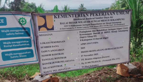 Selain dari pada itu proyek peningkatan dan rehabilitasi jaringan irigasi utama ini bernilai sangat pantastis mencapai RP 46 Miliar lebih, yang tersebar di 8 Kabupaten dan 33 Daerah Irigasi Wilayah Provinsi Lampung.