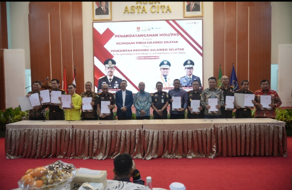Makasar, Adhyaksanews. -- --Kejaksaan Tinggi Sulawesi Selatan (Kejati Sulsel) bersama Pemerintah Provinsi Sulawesi Selatan (Pemprov Sulsel) melakukan penandatangan Nota Kesepahaman (MoU) tentang penerapan pidana kerja sosial (Social Service Order) bagi pelaku tindak pidana di Baruga Asta Cita, Rumah Jabatan Gubernur Sulawesi Selatan, Kamis (20/11/2025).