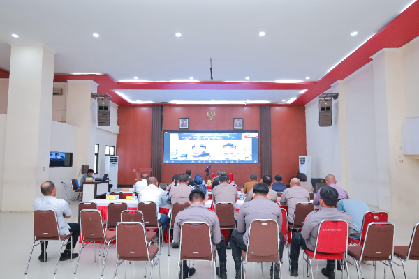 Maluku Utara, Adhyaksanews. -- --Kepolisian Daerah Maluku Utara melalui Inspektorat Pengawasan Daerah (Irwasda) menghadiri kegiatan Rapat Analisa dan Evaluasi (Anev) Program Ketahanan Pangan Nasional secara daring (online) melalui Zoom Meeting, bertempat di Aula Polda Maluku Utara. Selasa, (22/7).