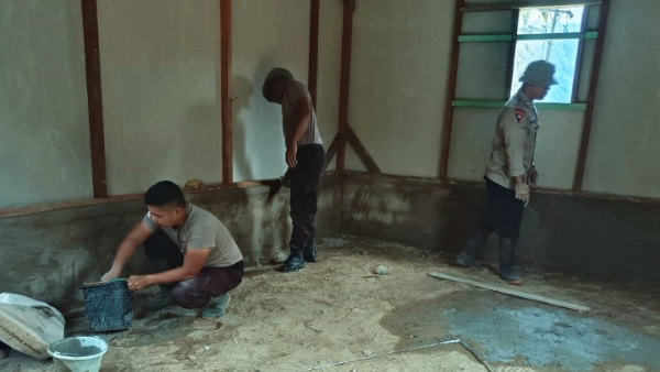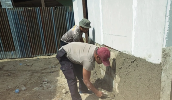 Dalam pelaksanaannya, personel Brimob Batalyon C melakukan pekerjaan plester dinding pada rumah swadaya hunian sementara ke-11 yang dibangun di wilayah tersebut. Proses ini menjadi tahapan penting untuk memastikan rumah yang dibangun lebih layak, aman, dan nyaman bagi penghuninya.