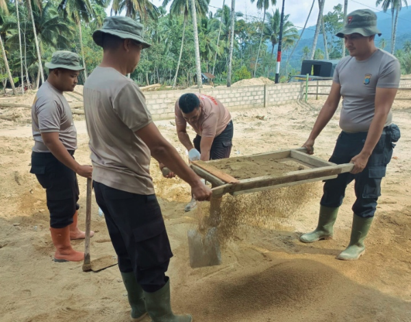 Tapsel, Adhyaksanews. -- --Kepedulian terhadap warga terdampak bencana terus ditunjukkan oleh Satuan Brimob Polda Sumatera Utara. Personel Brimob Batalyon C bersama masyarakat setempat melaksanakan pembangunan rumah swadaya bagi korban banjir di Desa Tolang Julu, Kecamatan Sayur Matinggi, Kabupaten Tapanuli Selatan, Rabu (21-01-2026).