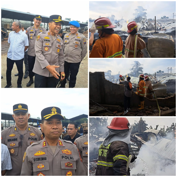 Keterangan foto: Kapolres Tebing Tinggi AKBP Simon Paulus saat meninjau lokasi kebakaran.