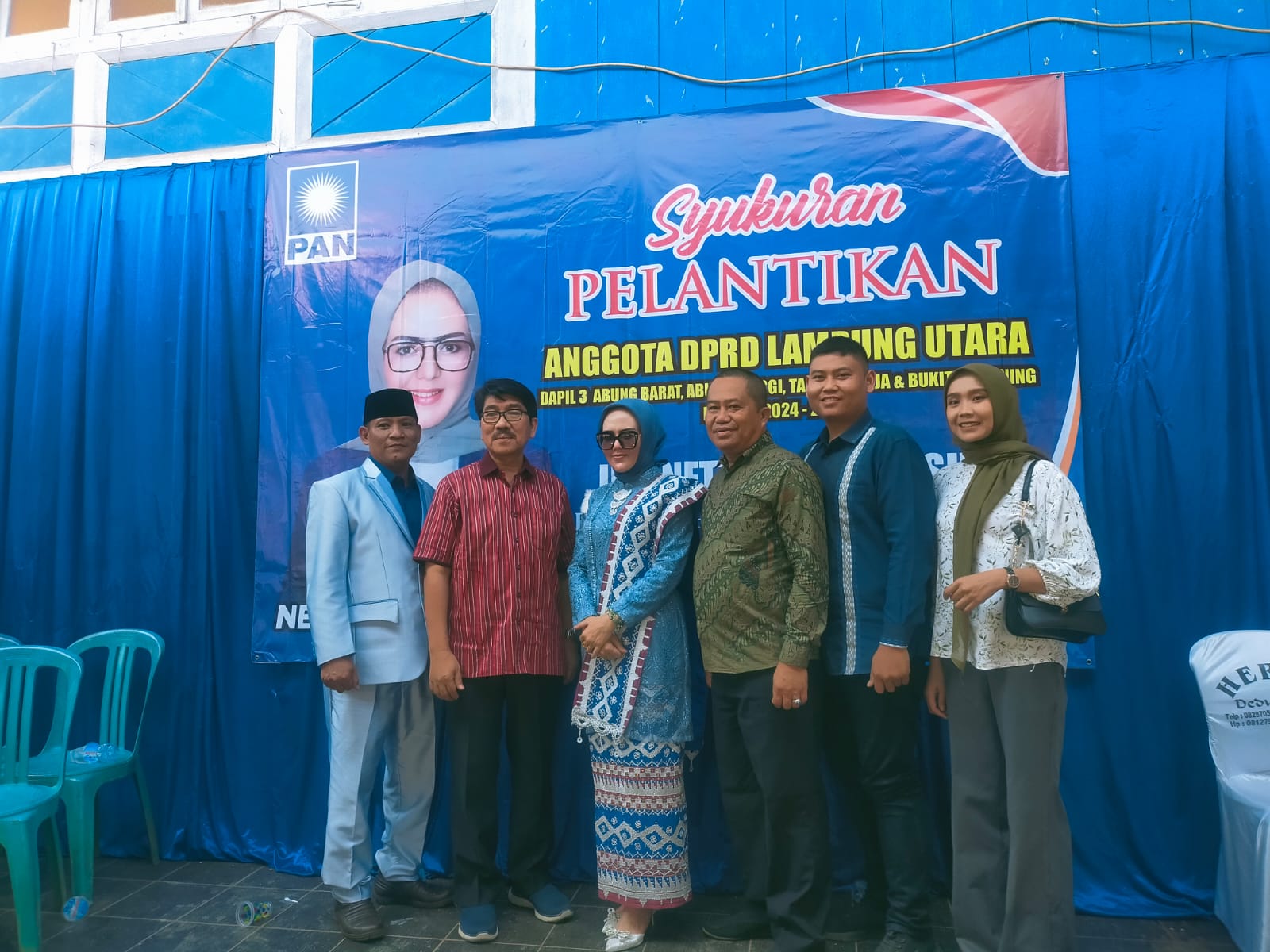 Dalam sambutannya anggota DPRD dari Partai PAN Netti Hastuti. SH menyampaikan, "Rasa lelah dan terharu pada pileg pebruari kemarin masih terasa hangat sekali dan kami yakin juga masih di rasakan juga oleh tim sukses, alhamdulillah masyarakat bapak ibu sekalian masih mempercayai saya dan telah menghantarkan saya menjadi anggota DPRD Lampura, untuk itu saya atas nama pribadi mengucapkan ribuan terima kasih kepada bapak ibu sudah mendukung saya, ucapnya.