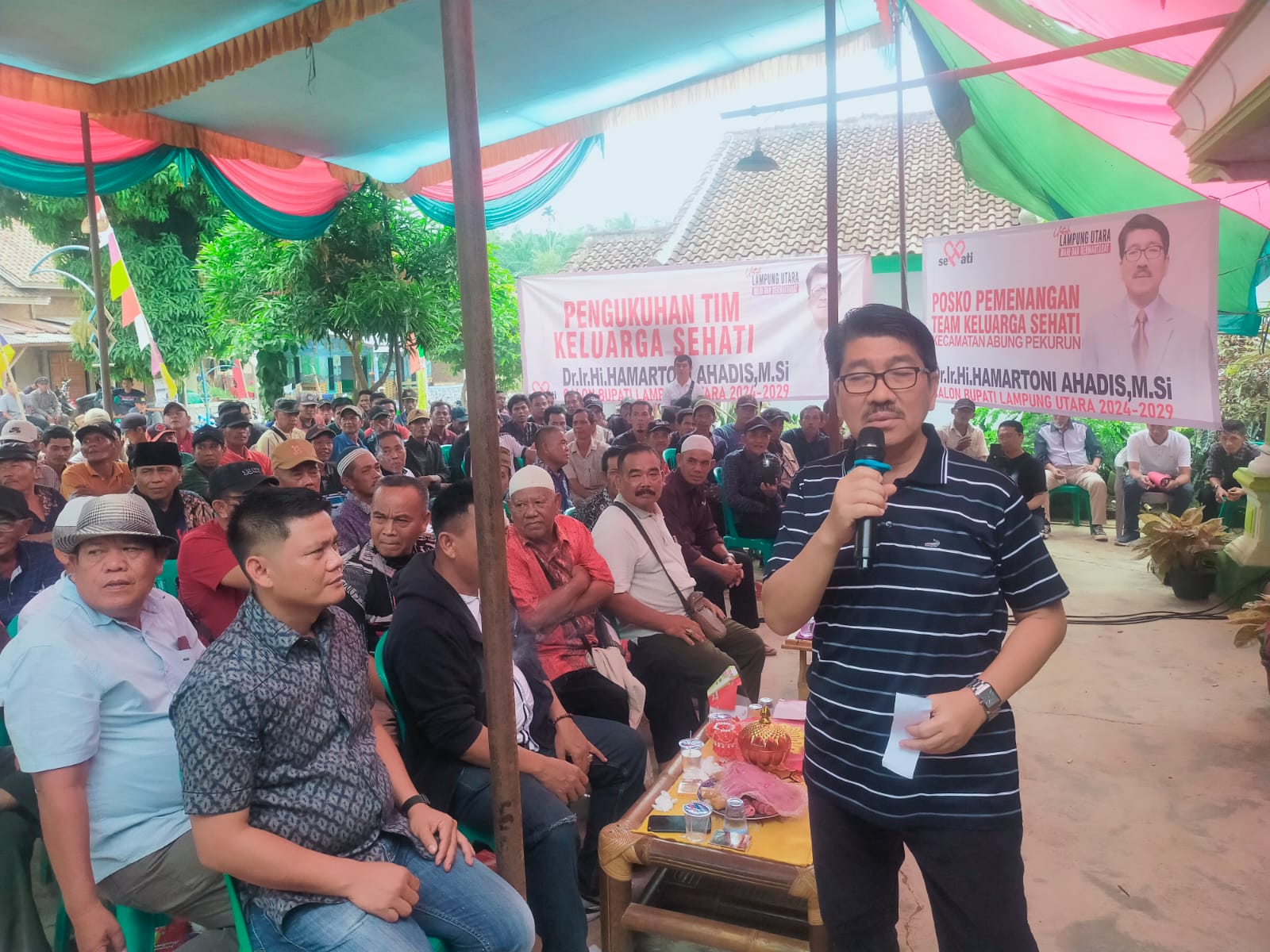 Adhyaksanews. Lampung Utara -- Calon Bupati (Cabup) Dr.Ir.Hi.Hamartoni Ahadis,M.Si hadiri dan kukuhkan tim pemenangan keluarga sehati kecamatan abung pekurun kabupaten lampung utara (Lampura).