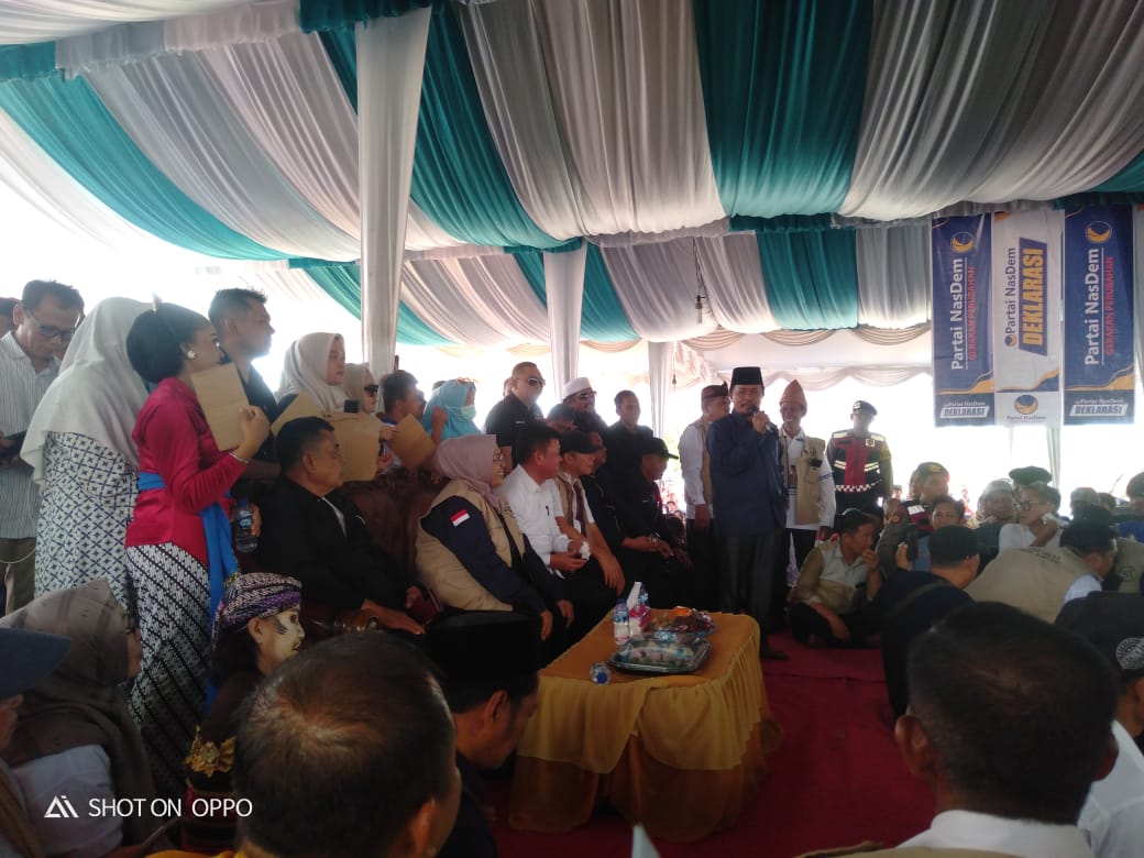 Deklarasi dimulai pembacaan 10 partai pengusung,yang dibacakan ketua DPC.Partai Nasdem Nasrun, selanjutnya kata sambutan dan orasi calon bupati Musi Rawas dan Wakil Bupati Musi Rawas yang di sampaikan Oleh Hj. Suwarti yang dengan tegas komitmennya untuk membawa perubahan nyata untuk kabupaten Musi Rawas.
