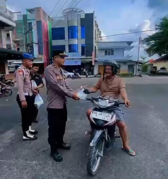 Selain melakukan pemantauan situasi keamanan, personel juga membagikan takjil kepada para pengendara dan masyarakat yang melintas.