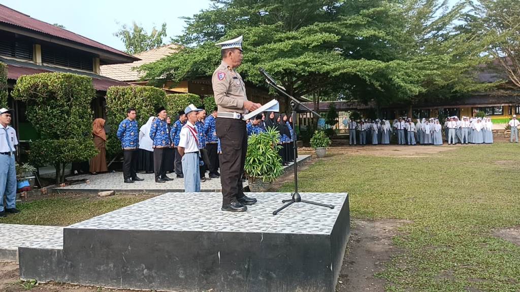 Adhyaksanews. INDRAGIRIHULU – Dalam upaya menanamkan kesadaran tertib berlalu lintas sejak dini, Kanit Lantas Polsek Rengat Barat IPTU P. Manurung bertindak sebagai pembina upacara bendera di SMA Negeri 1 Rengat Barat pada Senin (17/2/2025). Kegiatan ini merupakan bagian dari Operasi Keselamatan Keselamatan Lancang Kuning 2024 , yang bertujuan untuk memberikan edukasi dan sosialisasi kepada pelajar tentang pentingnya keselamatan di jalan raya.