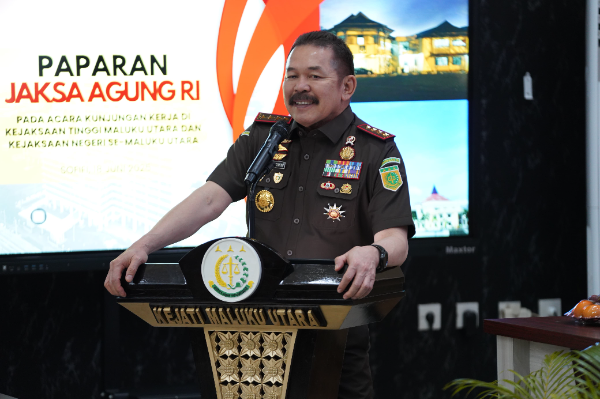 Adhyaksanews. -- -- Jakarta. Jaksa Agung Republik Indonesia ST Burhanuddin, melakukan kunjungan kerja ke Kejaksaan Tinggi (Kejati) Maluku Utara di Sofifi pada Rabu, 18 Juni 2025. Dalam kunjungan tersebut, Jaksa Agung memberikan pengarahan menyeluruh kepada jajaran Kejaksaan se-wilayah Maluku Utara guna memperkuat kinerja dan sinergi kelembagaan dalam mendukung penegakan hukum serta pembangunan nasional.