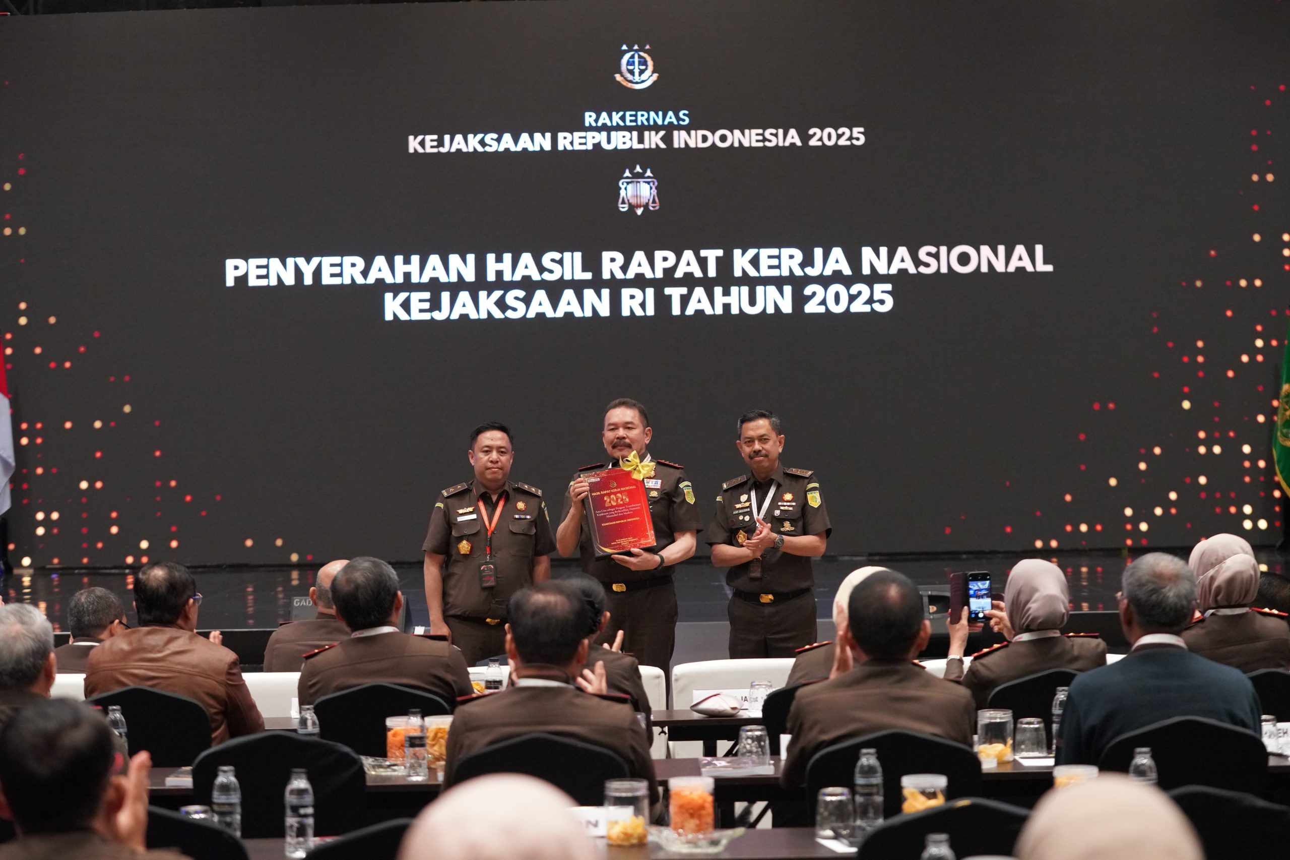 Penutupan Rakernas Kejaksaan RI Tahun 2025 dihadiri oleh Ketua Komisi Kejaksaan Republik Indonesia, Wakil Jaksa Agung, Para Jaksa Agung Muda, Para Kepala Badan dan Para Staf Ahli Jaksa Agung, Para Pejabat Eselon II di Lingkungan Kejaksaan Agung, Para Kepala Kejaksaan Tinggi seluruh Indonesia. (Tim )
