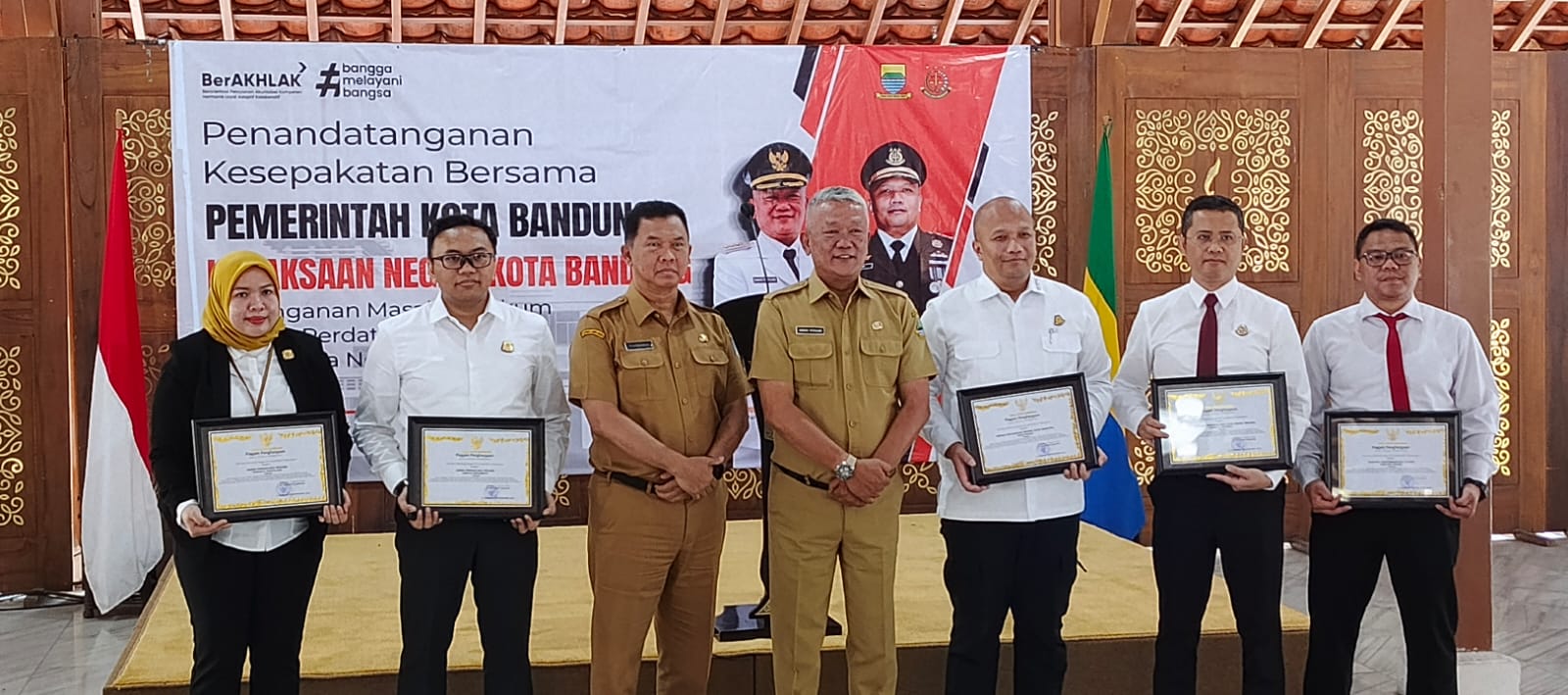 Pj. Wali Kota Bandung, Bambang Tirtoyuliono memberikan penghargaan kepada enam Jaksa Pengacara Negara (JPN) Kejaksaan Negeri (Kejari) Kota Bandung, Penghargaan diberikan atas keberhasilan mereka menyelamatkan aset Pemkot Bandung.