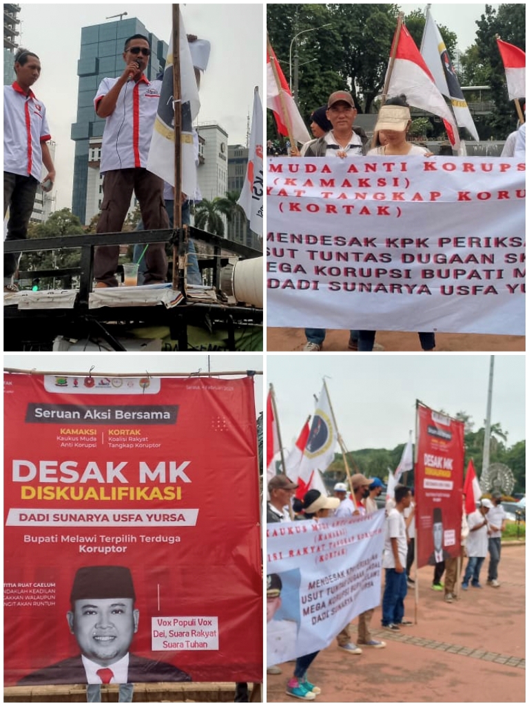 Mahkamah Konstitusi Republik Indonesia (MK RI) sebagai lembaga peradilan harusnya menjamin supremasi konstitusi, menegakkan prinsip-prinsip demokrasi dan hukum, serta melindungi hak-hak konstitusional warga negara. Desakan kepada Hakim MK agar mendengar aspirasi rakyat dan kelompok Aktivis Nasional terus disuarakan dalam semangat pemberantasan korupsi di Tanah Air yang diduga melibatkan Pejabat Daerah. "Kami mendesak Pihak MK agar segera mendiskualifikasi Dadi Sunarya Usfa Yursa di Pilkada Melawi atas dugaan sejumlah kasus korupsi. Presidium Aktivis Nasional yang tergabung di dalam KAMAKSI dan KORTAK akan terus bergerak menyuarakan keadilan agar Pihak Aparat Penegak Hukum segera mengusut tuntas dugaan kasus korupsi Bupati Melawi Dadi Sunarya Usfa Yursa. Kami juga akan terus mendesak Hakim MK mendengar aspirasi rakyat dengan mendiskualifikasi Dadi Sunarya Usfa Yursa di Pilkada Melawi atas sejumlah dugaan kasus korupsi di Melawi. Semua warga negara sama di mata hukum jangan ada tebang pilih dalam mengusut tuntas dugaan skandal korupsi di Melawi," tegas Sutisna Koordinator BAPOR yang juga Presidium KORTAK.