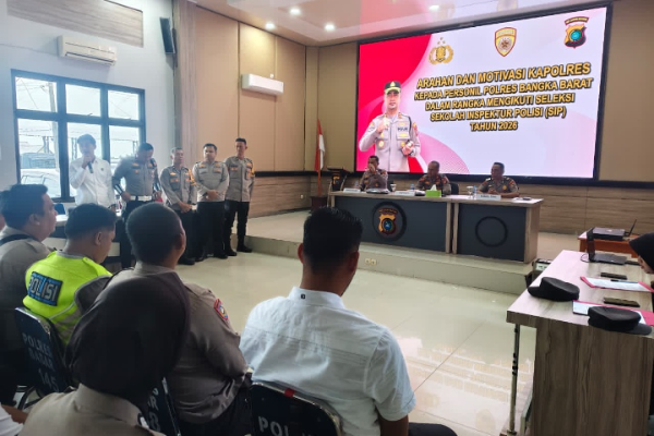 Adhyaksanews. -- --Kapolres Bangka Barat memberikan arahan dan motivasi kepada personel Polres Bangka Barat yang telah memenuhi syarat untuk mengikuti Seleksi Sekolah Inspektur Polisi (SIP) Tahun Anggaran 2026.
