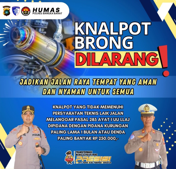 Adhyaksanews. -- --Dalam upaya menjaga ketertiban dan kenyamanan masyarakat, Kapolres Bangka Barat, AKBP Pradana Aditya Nugraha, S.H., S.I.K., kembali mengeluarkan himbauan kepada masyarakat, khususnya para pengendara sepeda motor, untuk tidak menggunakan knalpot brong atau knalpot modifikasi yang menghasilkan suara bising.