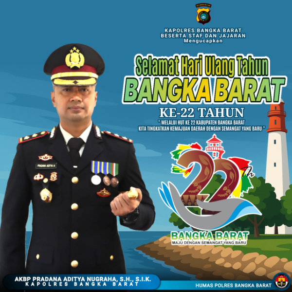 “Kapolres Bangka Barat beserta seluruh staf dan jajaran mengucapkan selamat Hari Ulang Tahun ke-22 Kabupaten Bangka Barat. Semoga daerah yang kita cintai ini semakin maju, aman, dan sejahtera,” ujar AKBP Pradana Aditya Nugraha.