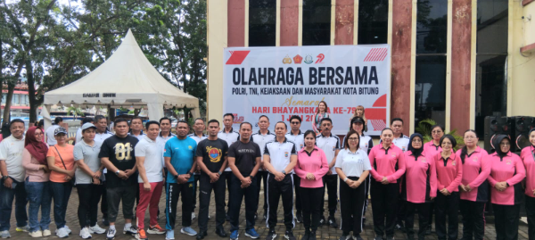Adhyaksanews. -- -- BITUNG - Humas Polres Bitung - Dalam rangka memperingati Hari Bhayangkara Ke-79 yang jatuh pada tanggal 1 Juli 2025, Polres Bitung bersama TNI, Kejaksaan, Pengadilan, Pemkot Bitung, dan Masyarakat Kota Bitung menggelar kegiatan olahraga bersama. Kegiatan ini berlangsung di Mapolsek Maesa pada hari Rabu, 25 Juni 2025, pukul 07.00 WITA.