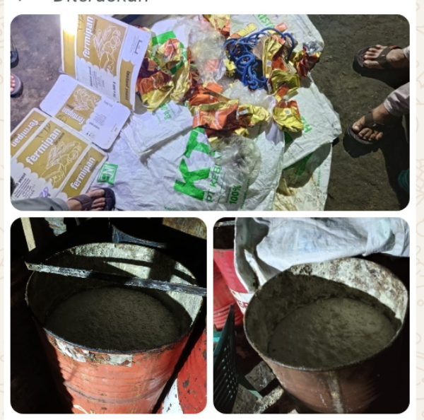 Kapolres halut AKBP Erlickson Pasaribu S.H, S.I.K bersama Kasat Narkoba Iptu Sudomo Latani, S.H dan Personil Sat Resnarkoba langsung mendatangi tempat penyulingan miras Bpak RN(40) di Desa yang sama yaitu Desa Kali Pitu dan menemukan Barang bukti berupa bahan mentah siap di olah sebanyak 4 drum, 15 bekas Karung gula dan 1 dos bekas kertas Fermifan,