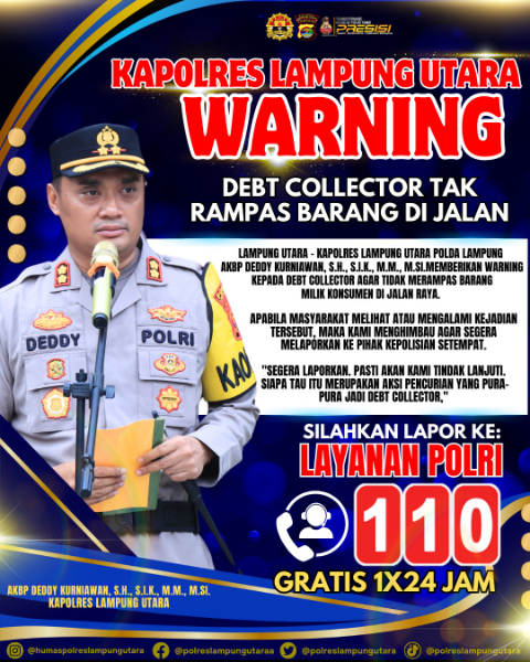 Adhyaksanews. -- --Lampung Utara - Kapolres Lampung Utara Polda Lampung AKBP Deddy Kurniawan, SH, SIK, MM, M.Si.memberikan peringatan kepada Debt Collector agar tidak merampas barang milik konsumen di jalan raya.