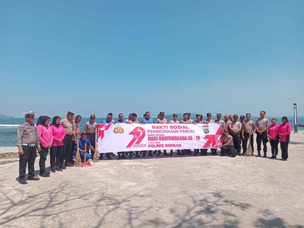 Sibolga, Adhyaksanews. -- --Pada hari Senin, 30 Juni 2025, pukul 11.00 WIB, Kapolres Sibolga AKBP Eddy Inganta, SH, SIK, MH, bersama Personil Polres Sibolga dan Pengurus Bhayangkari Cabang Sibolga, dalam Rangka Hari Bhayangkara Ke-79 Tahun 2025, melaksanakan Bakti Sosial "Bersih Pantai" yang berlangsung di Pelabuhan Lama Sibolga Jalan Com. Yos Sudarso Kelurahan Kota Baringin Kecamatan Sibolga Kota, Kota Sibolga.