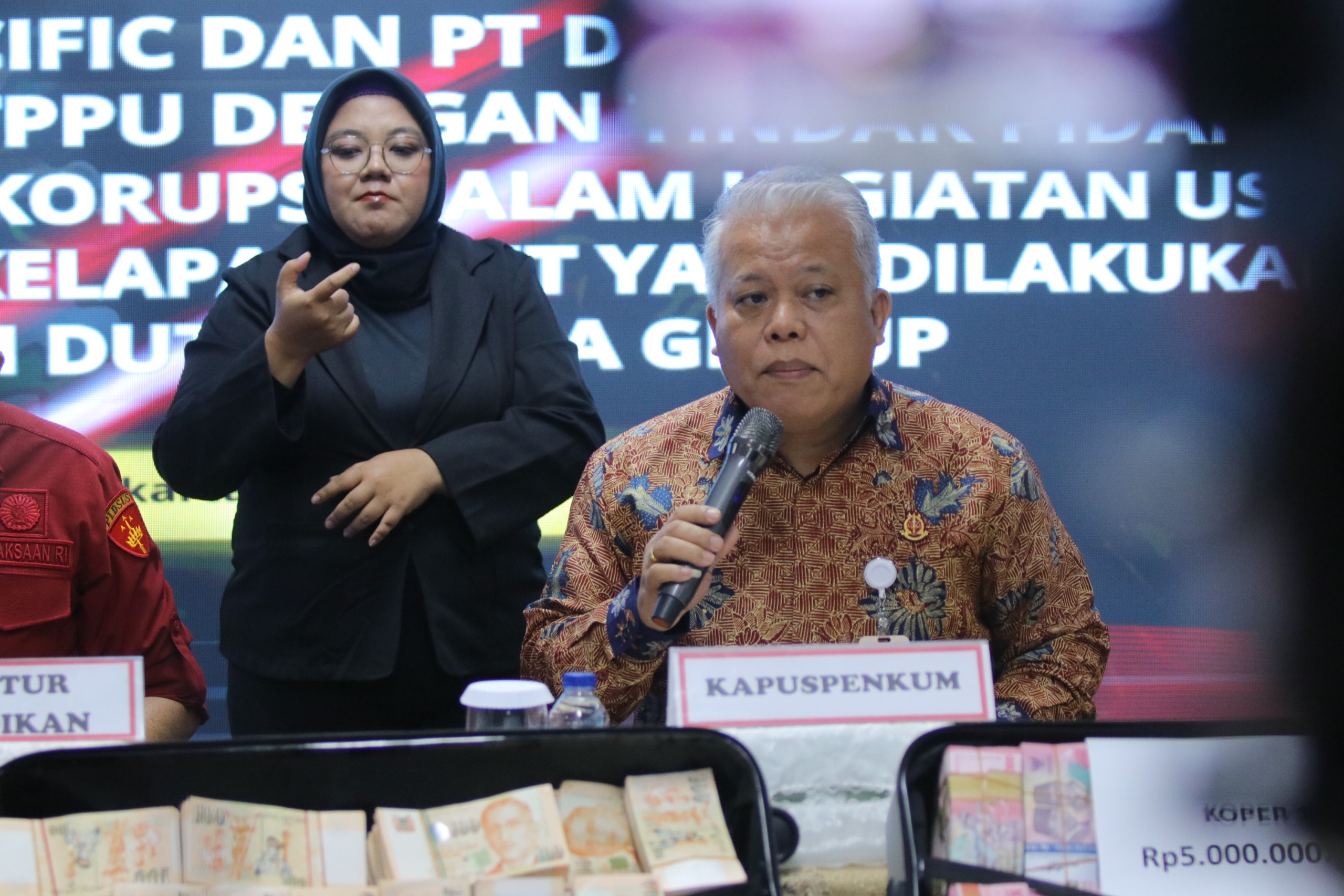 "Jenis uang yang disita terdiri dari Rp40 miliar (empat puluh miliar rupiah);S GD 2 juta (dua juta dolar singapura), atau bila dirupiahkan senilai Rp23,7 miliar (dua puluh tiga koma tujuh miliar rupiah)" terang Kapuspenkum.