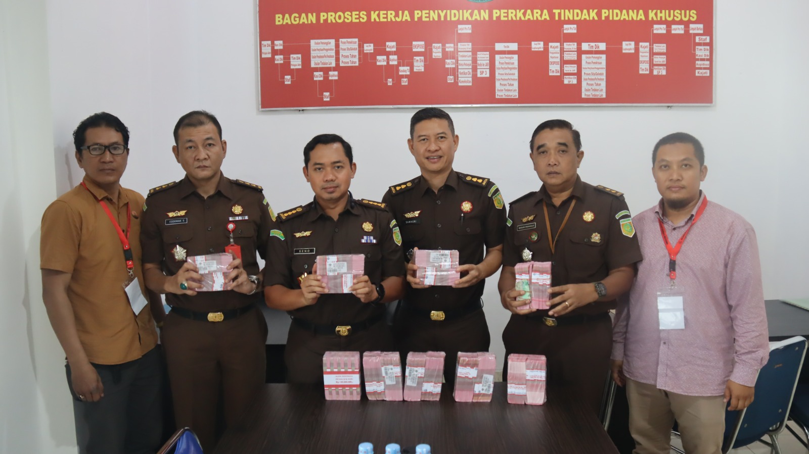 Sedangkan yang telah dikembaikan melalui penyidik sebanyak Rp 1.897.426.000,- (satu miliar delapan ratus sembilan puluh tujuh juta empat ratus dua puluh enam ribu rupiah) jadi total keseluruhan Keuangan Negara yang telah dikembalikan/dipulihkan sebanyak Rp 6.067.839.302,00 (enam miliar enam puluh tujuh juta delapan ratus tiga puluh sembilan ribu tiga ratus dua rupiah).