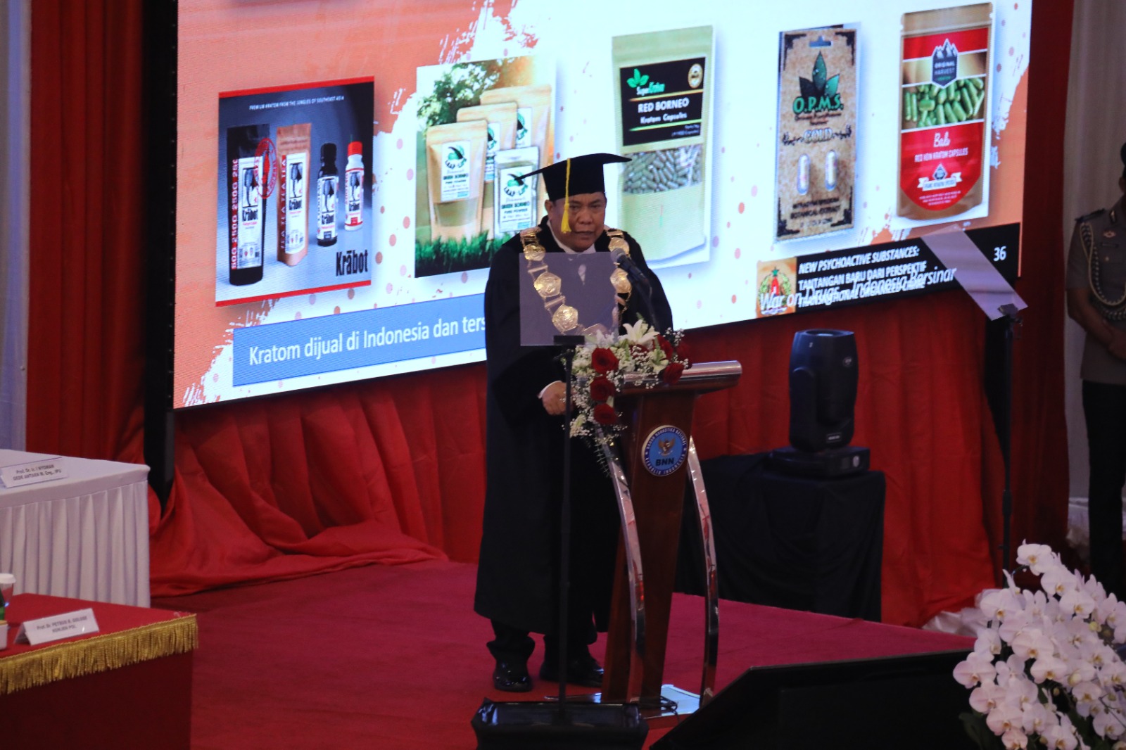 Dalam Upacara Pengukuhan Guru Besar Tetap, Kepala BNN RI menyampaikan orasi ilmiah yang berjudul New Psychoactive Substances : Tantangan Baru dari Perspektif Transnational Organized Crime. Dalam orasi tersebut, Kepala BNN RI membagi tiga gagasan penting, yaitu Kejahatan Narkotika dalam Perspektif Transnational Organized Crime; Emerging Threat : New Psychoactive Substances; dan Pengarusutamaan Konsep Depenalisasi.