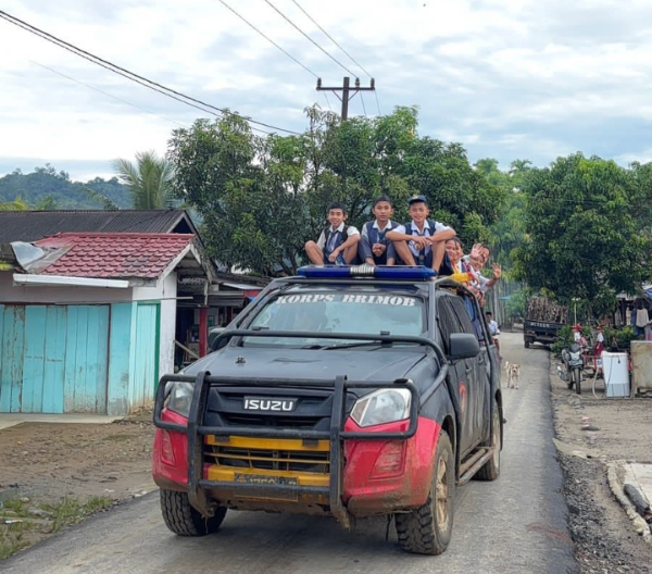 Di tengah kondisi infrastruktur yang belum sepenuhnya pulih, personel Brimob tidak hanya menyediakan sarana transportasi, tetapi juga dengan sigap membantu siswa-siswi menyeberangi jembatan sementara yang dibangun pascabanjir bandang. Langkah ini dilakukan demi memastikan anak-anak tetap dapat mengikuti kegiatan belajar mengajar dengan aman dan tepat waktu.