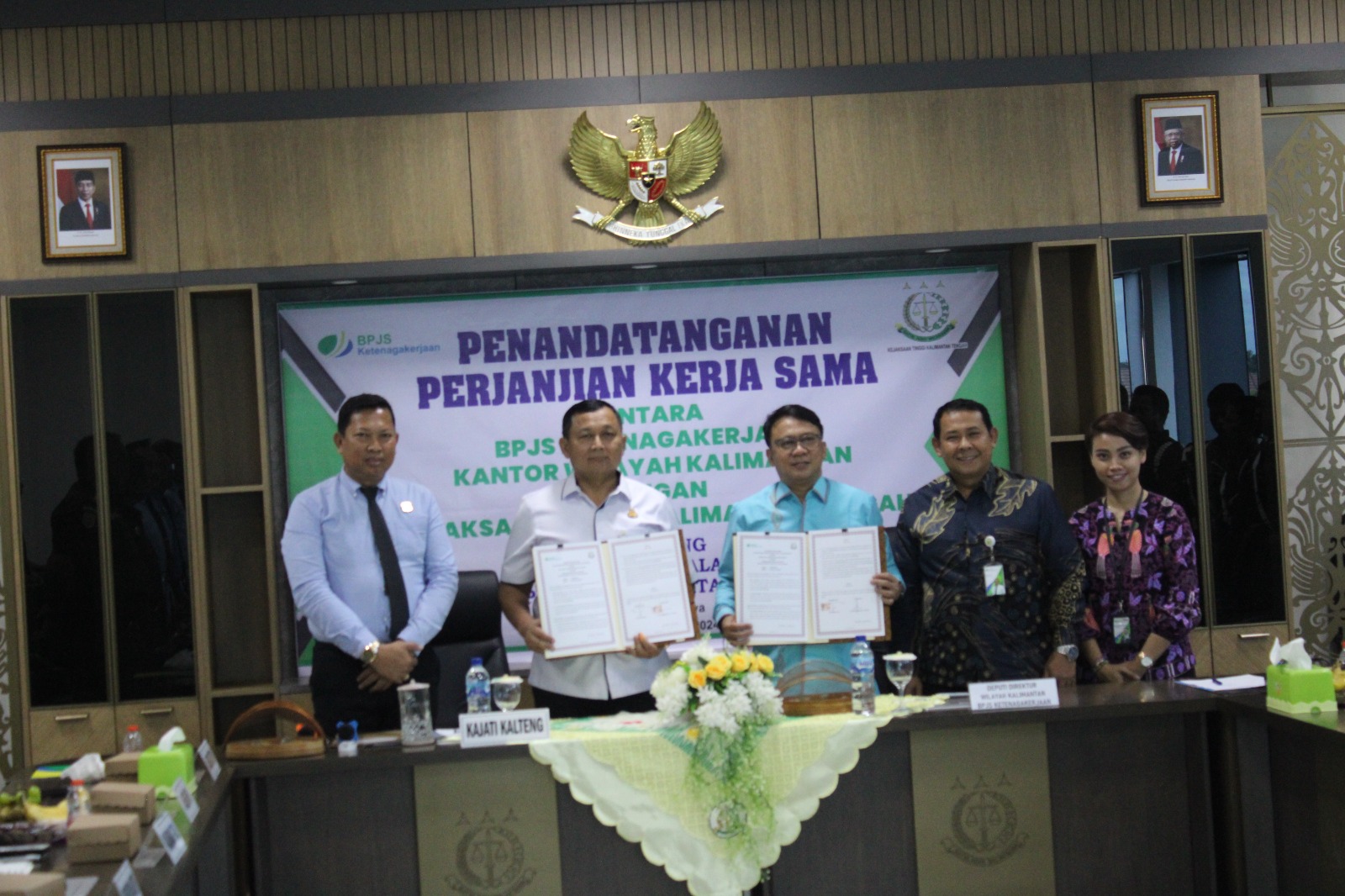 "Penandatanganan Perjanjian Kerjasama ini dilakukan oleh Erfan Kurniawan selaku Deputi Direktur Wilayah Kalimantan BPJS Ketenagakerjaan dengan Kepala Kejaksaan Tinggi Kalimantan Tengah Dr. Undang Mugopal, S.H., M.Hum " Ujar Kasi Penkum.