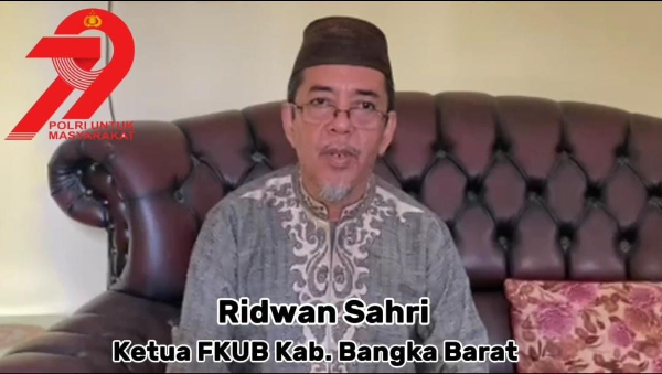 Adhyaksanews. -- -- Bangka Barat. Ridwan Sahri, ketua FKUB Kabupaten Bangka Barat mengucapkan selamat HUT Bhayangkara ke - 79, di moment penting ini FKUB Kabupaten Bangka Barat dalam bersinergi dengan Kepolisian mendukung Polri dan mengapresiasi kinerjanya dalam menjaga kamtibmas dimasyarakat, menciptakan suasana yang baik dan kondusif.