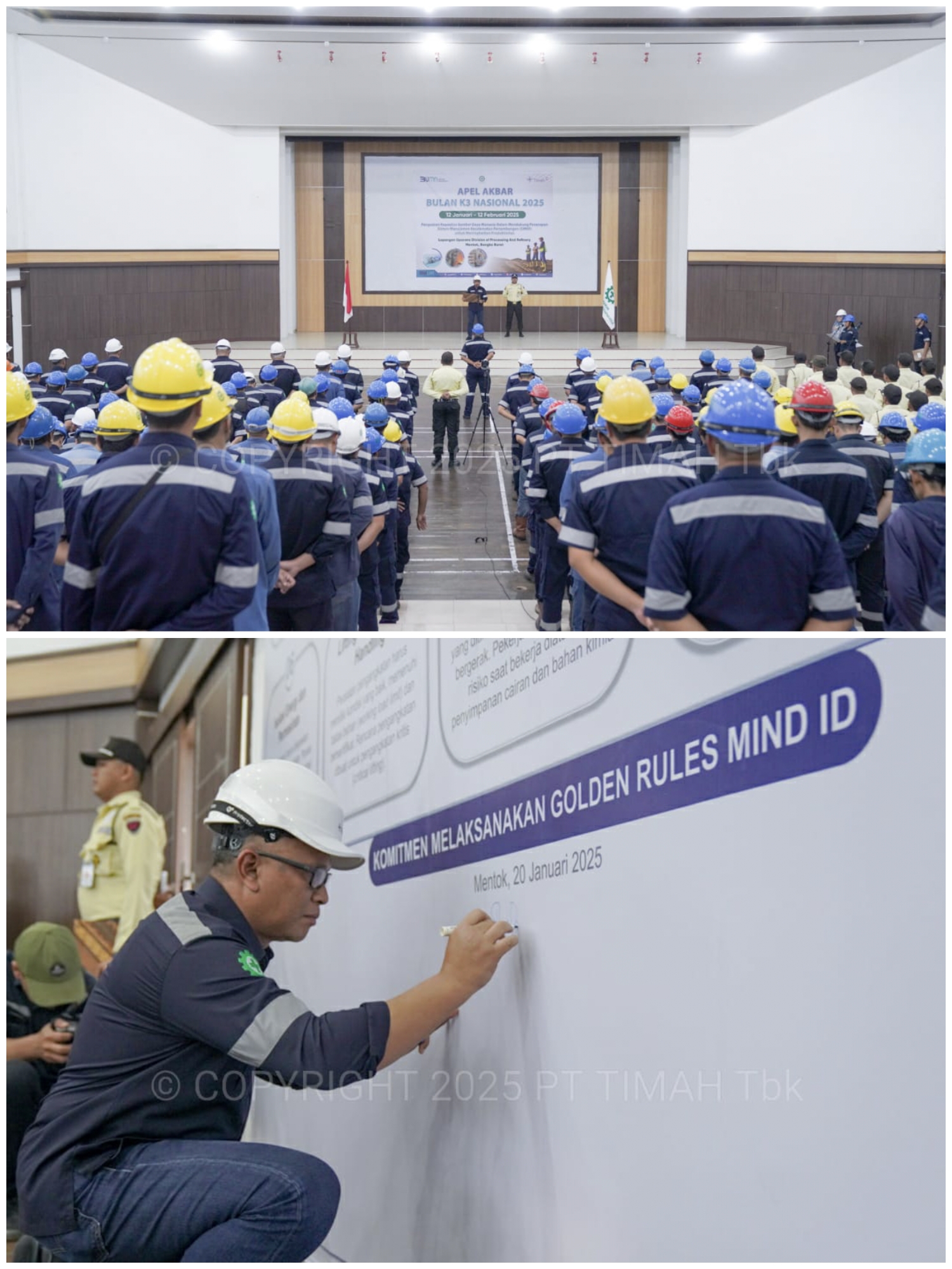 Adhyaksanews. BANGKA BARAT -- Sebagai bagian dari komitmen dalam mendukung budaya Keselamatan dan Kesehatan Kerja (K3), PT Timah menggelar Apel Akbar Peringatan Bulan K3 Nasional dengan tema "Penguatan Kapasitas Sumber Daya Manusia Dalam Mendukung Penerapan Sistem Manajemen Keselamatan Pertambangan (SMKP) Untuk Produktivitas. yang dilaksanakan di Wisma Majapahit Mentok, Senin (20/1/2025).