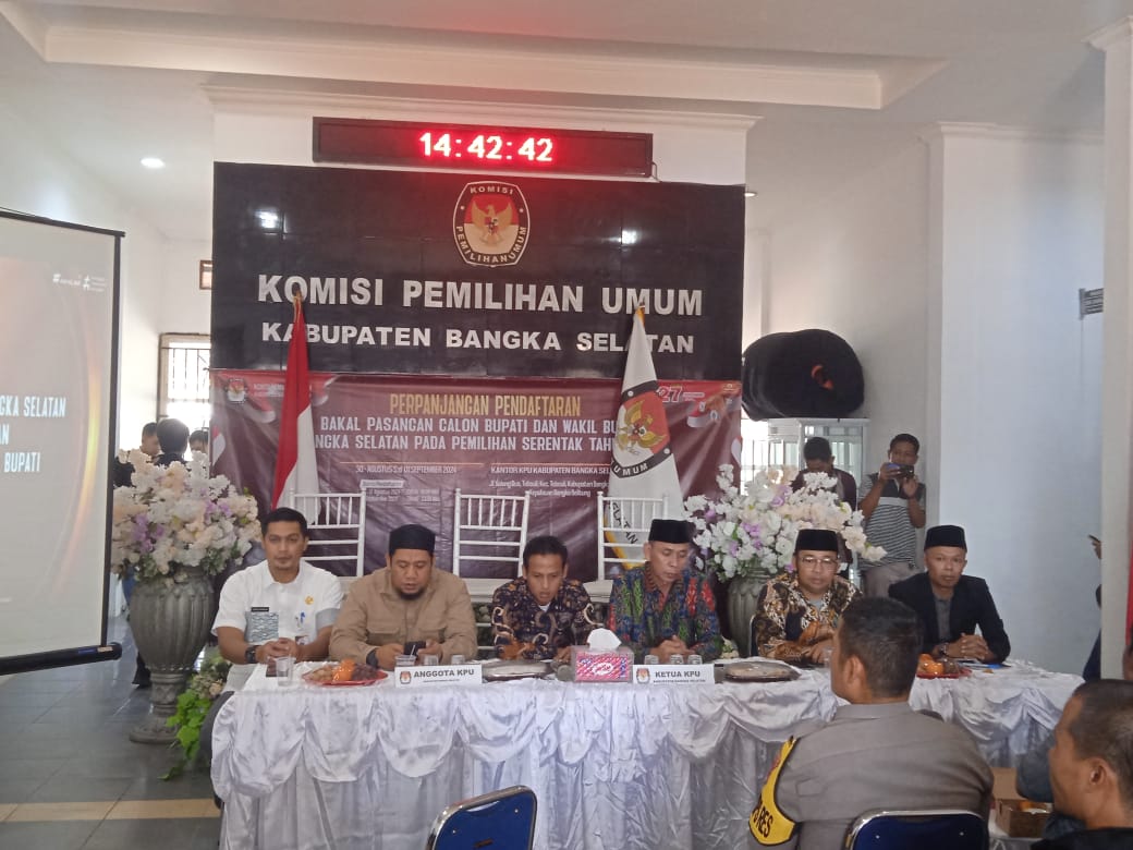 Komisi Pemilihan Umum Bangka Selatan, Muhidin mengatakan dalam Sambutannya, " perpanjangan pendaftaran ini dilakukan KPU Bangka Selatan sesuai dengan aturan yang tertuang dalam PKPU No 10 tahun 2024.