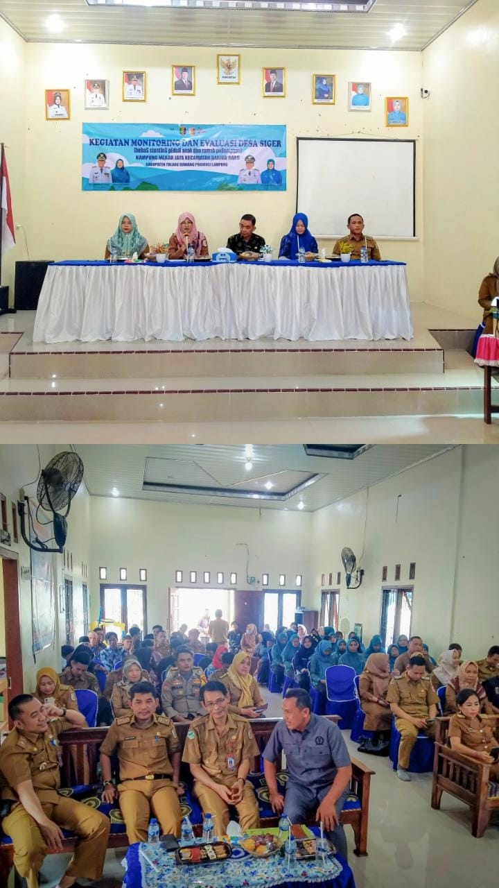 " Surat sekertaris daerah nomor400.2.1/4812/V.09/2024 tanggal 25 September 2024 tentang pelaksanaan monitoring evaluasi desa SIGER (bebas StuntinG pEduli anak ramah perempuan) provinsi lampung tahun 2024. Rapat tim monitoring evaluasi desa SIGER provinsi lampung tahun 2024 pada tanggal 11 November 2024.