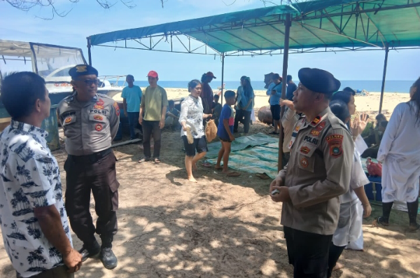 Selain itu, personel juga memberikan imbauan kepada masyarakat agar tetap berhati-hati saat beraktivitas di pantai, terutama terkait keselamatan saat berenang dan menjaga barang bawaan.