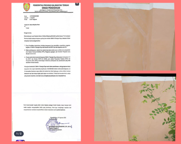 Adhyaksanews. -- -- Palangka Raya, Kalimantan Tengah – Menyikapi surat balasan dari Dinas Pendidikan Provinsi Kalimantan Tengah terkait adanya Dugaan temuan tim Investigasi Adhyaksa News dengan adanya keretakan berulang Kali pada bangunan baru SMA Negeri 4 Palangka Raya di Jalan Sisingamangaraja III, Menteng, Pahandut, Rabut selaku Ketua Umum Laskar Anti Korupsi Indonesia (LAKI), menyampaikan apresiasi sekaligus menegaskan kembali pentingnya transparansi publik dalam pengelolaan Anggaran Pembangunan Sarana Pendidikan.