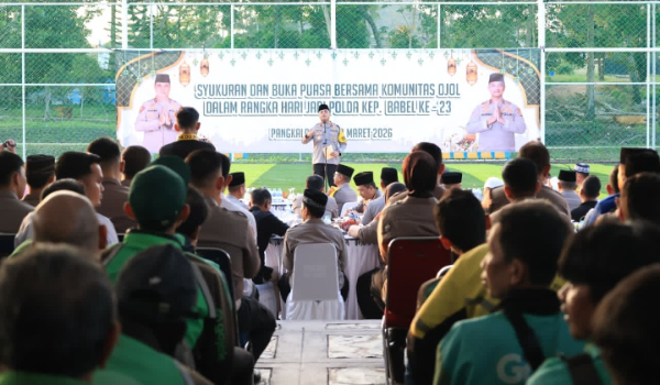 Pangkalpinang, Adhyaksanews. -- --Polda Bangka Belitung menggelar buka bersama dengan komunitas pengemudi ojek online Pangkalpinang, Jumat (13/3/26). Momen itu juga berbarengan dengan syukuran Hari Jadi Polda Babel ke 23 tahun.