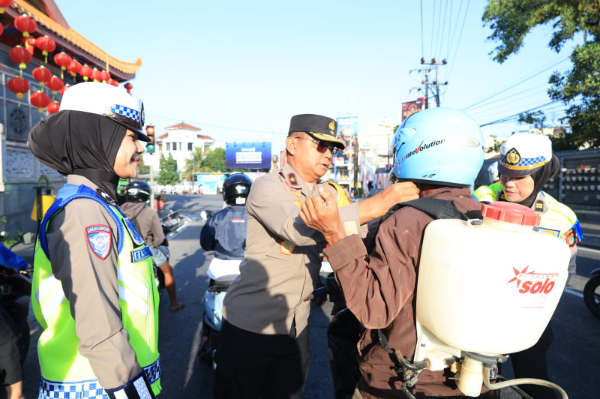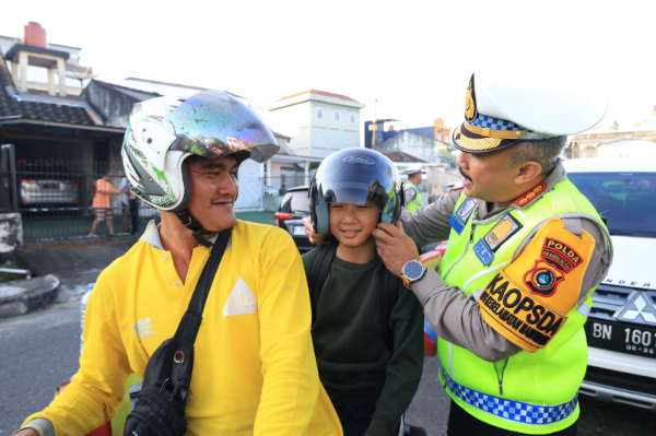 "Kita kasih juga coklat kepada pengendara, termasuk kalau ada anak-anak boncengan yang tidak pakai helm kita pasangkan juga helm,"ungkapnya.