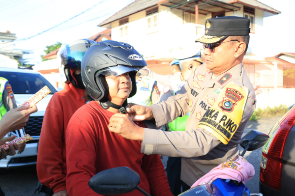 Lebih lanjut, Pringadhi menyebutkan bagi-bagi helm ini merupakan upaya Kepolisian untuk meningkatkan kesadaran masyarakat pentingnya penggunaan helm saat berkendara.