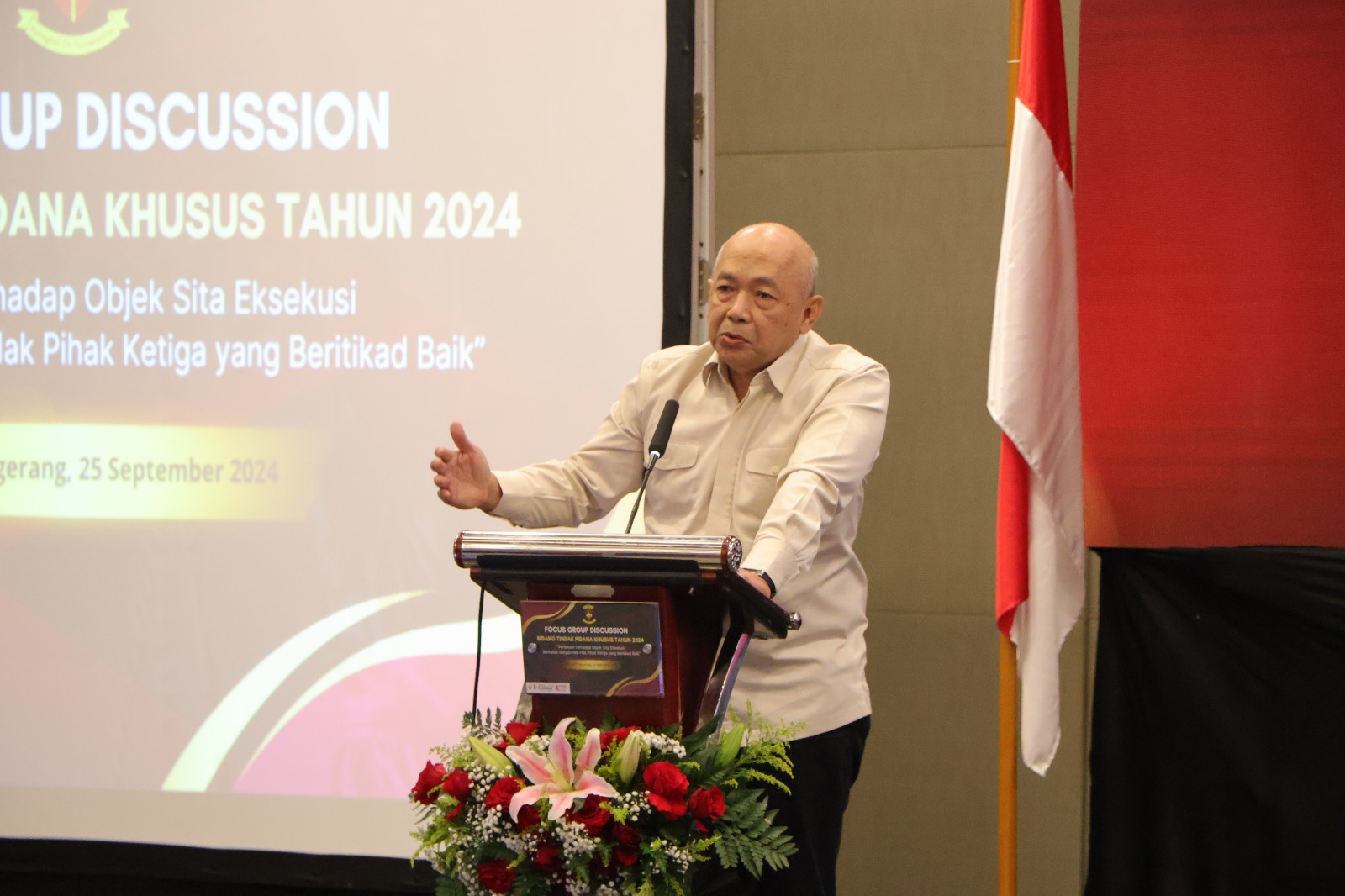 Adhyaksanews - Jakarta – Jaksa Agung Muda Bidang Tindak Pidana Khusus (JAM PIDSUS) menyelenggarakan Focus Group Discussion (FGD) dengan tema “Perlakuan Terhadap Objek Sita Eksekusi Berkaitan dengan Hak-Hak Pihak Ketiga yang Beritikad Baik”, yang berlangsung pada Rabu 25 September 2024 di Indonesian Convention Exhibition (ICE) BSD, Tangerang.