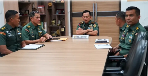 Palembang, Adhyaksanews. -- --Pangdam II/Sriwijaya Mayjen TNI Ujang Darwis, M.D.A. mengikuti Rapat Koordinasi Apel Kesiapsiagaan Bencana Hidrometeorologi Basah secara video conference (vicon) yang bertempat di ruang rapat Pangdam II/Sriwijaya, Palembang. Senin (29/12/2025), pukul 08:13 (WIB)
