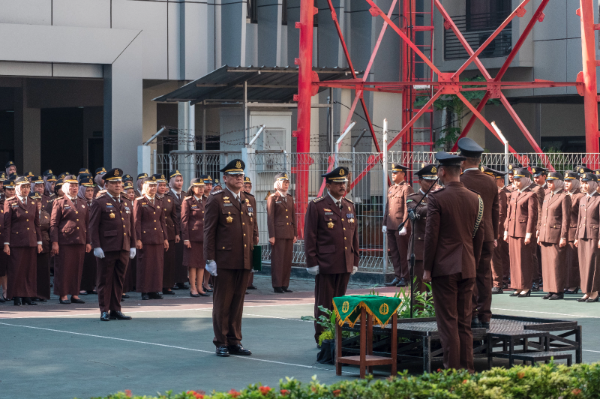 Sorot matanya, cara memberi komando, hingga wibawanya di hadapan barisan, menyulut semangat para peserta. Seakan hendak menegaskan bahwa jaksa bukan hanya aparatur penegak hukum, melainkan juga prajurit bangsa yang setia menjaga kedaulatan dan kehormatan negara.